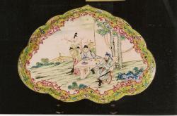 Ил.150. Поднос в форме головки жезла жуи с китайской театральной сценой. Медь, расписная эмаль, золочение. Мастерские Кантона/Гуанчжоу, период Цяньлун. Собрание ГИКМЗ «Московский Кремль» (инв. № 15265 охр).