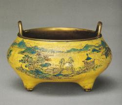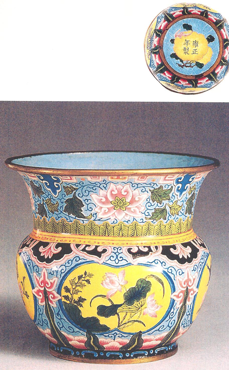 Ил.153. Курильница в виде ритуального треножника дин. Металл, расписная эмаль, золочение. Пекинские придворные мастерские, период Канси. Музей Гугун, Пекин [160, № 175].
