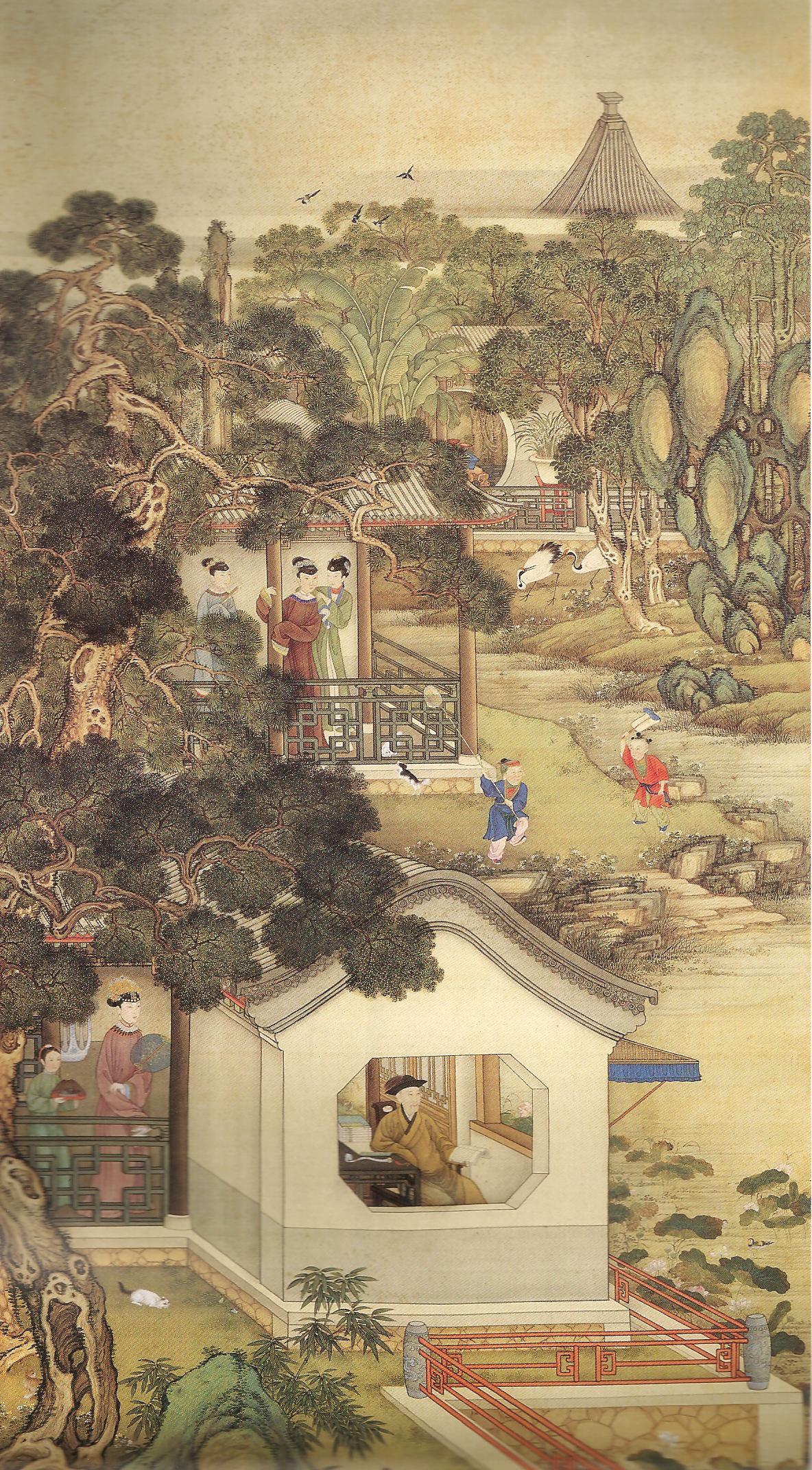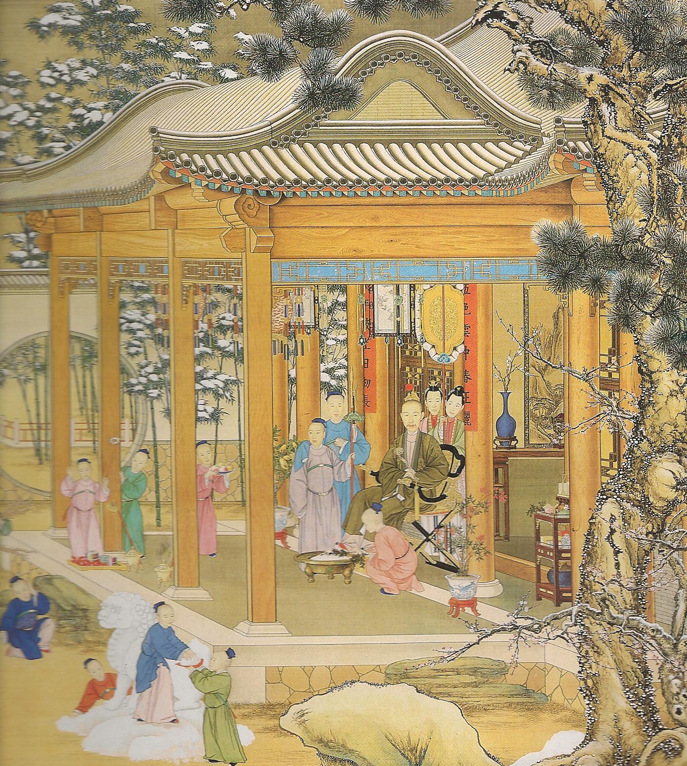 Ил.157. Фрагмент вертикального свитка, изображающего Юнчжэна во дворце Юаньминъюань. Шелк, полихромная живопись. Китай, XVIII в. Музей Гугун, Пекин [165, с. 276].