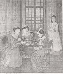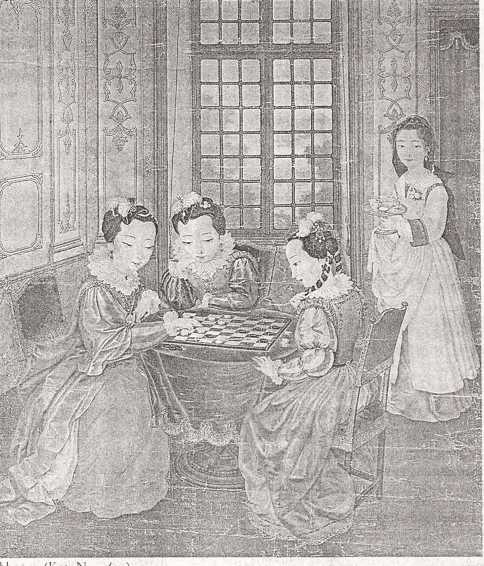 Ил.162. Неизвестный европейский художник второй половины XVIII в. Интерьер «европейского» дворца в комплексе Юаньминъюань с изображением придворных дам за игрой. Шелк, живопись. Музей народного искусства, Гамбург [206, с. 262].