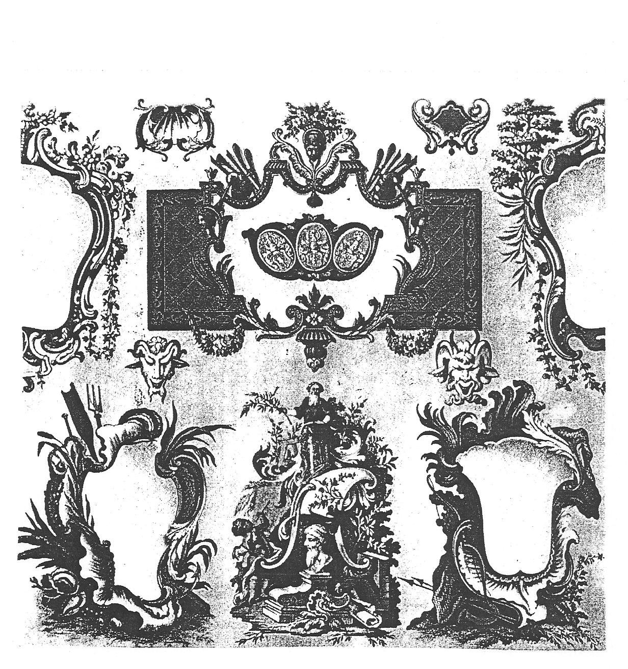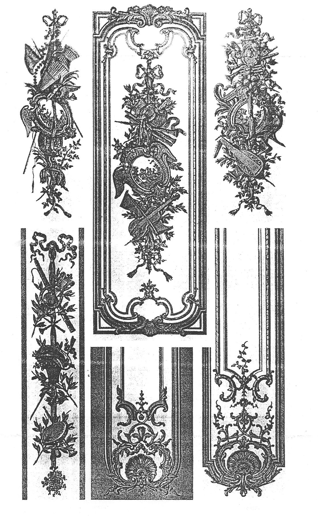 Ил.163. Образцы декоративных панелей, использованных в Версале при отделке стен Малых покоев и Салона Аделаиды, дочери Людовика XIV. Франция, первая половина XVIII в. [103, табл. 208].