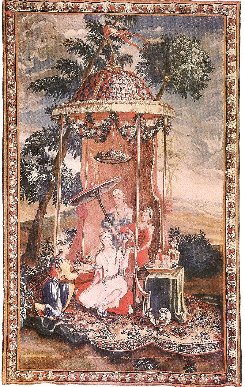 Ил.166. «Чаепитие у китайской императрицы». Шпалера из серии «История Китайской империи». Мануфактура Бове. Франция, первая половина XVIII в. [39, с. 74].