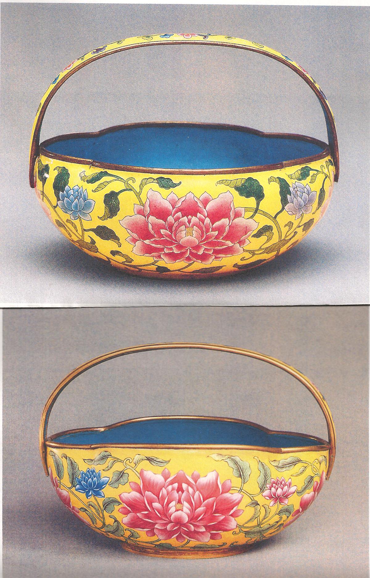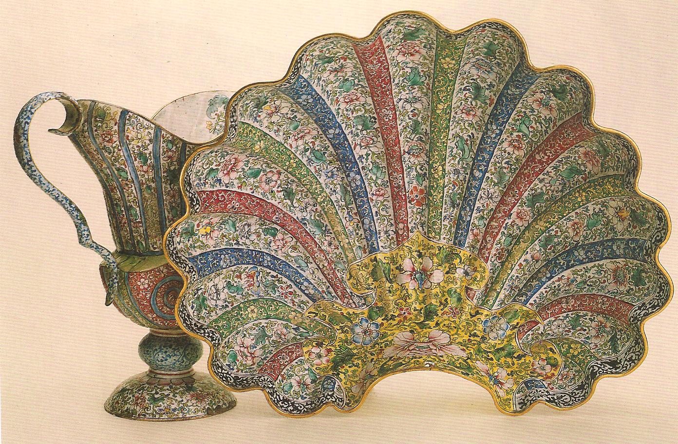 Ил.170. Умывальный набор (кувшин и таз). Медь, эмаль, полихромная роспись. Мастерские Кантона/Гуанчжоу, первая треть XVIII в. ГЭ, Санкт-Петербург [7, № 3].