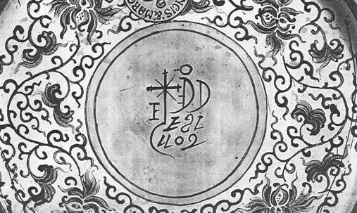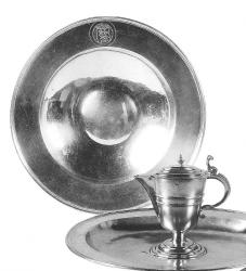 Ил.171. Детали умывальных наборов (тазы и кувшин). Серебро, литье, чеканка, золочение. Германия, первая половина XVII в. [Шедевры немецкого серебра в Кремле (каталог выставки). М., 2002, № 61, 75].