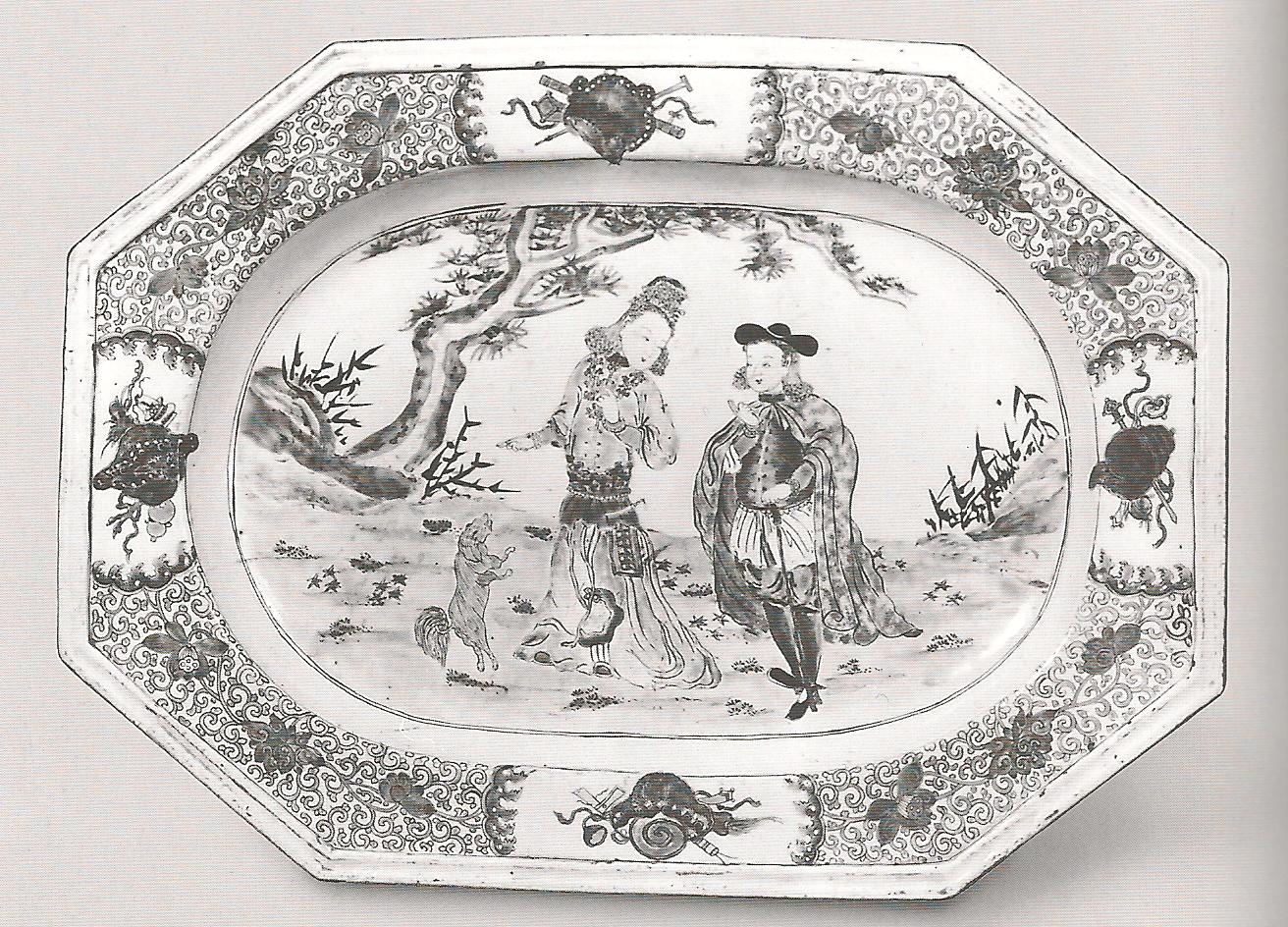 Поднос в форме головки жезла-жуи с китайской театральной сценой