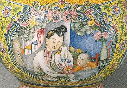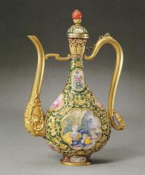 Ил.172. Кувшин с китайской сценой. Медь, эмаль, роспись в гамме розового семейства. Мастерские Кантона/Гуанчжоу, Период Цяньлун. ГЭ, Санкт-Петербург [7, ил. 8].