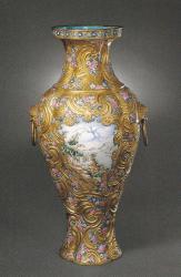 Ил.226. Двойные вазы с рельефным шнуром и декором в «чжоуском стиле». Металл, перегородчатая эмаль, гравировка, золочение. Китай, марка и период Цяньлун. Музей Гугун, Пекин [160, № 100].