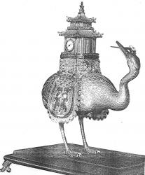 Ил.233. Часы в виде журавля с пагодой на спине. Бронза, стекло, литье, гравировка, золочение. Мастер Дж. Кокс, Англия, 1780. Музей Гугун, Пекин [164, с. 108].