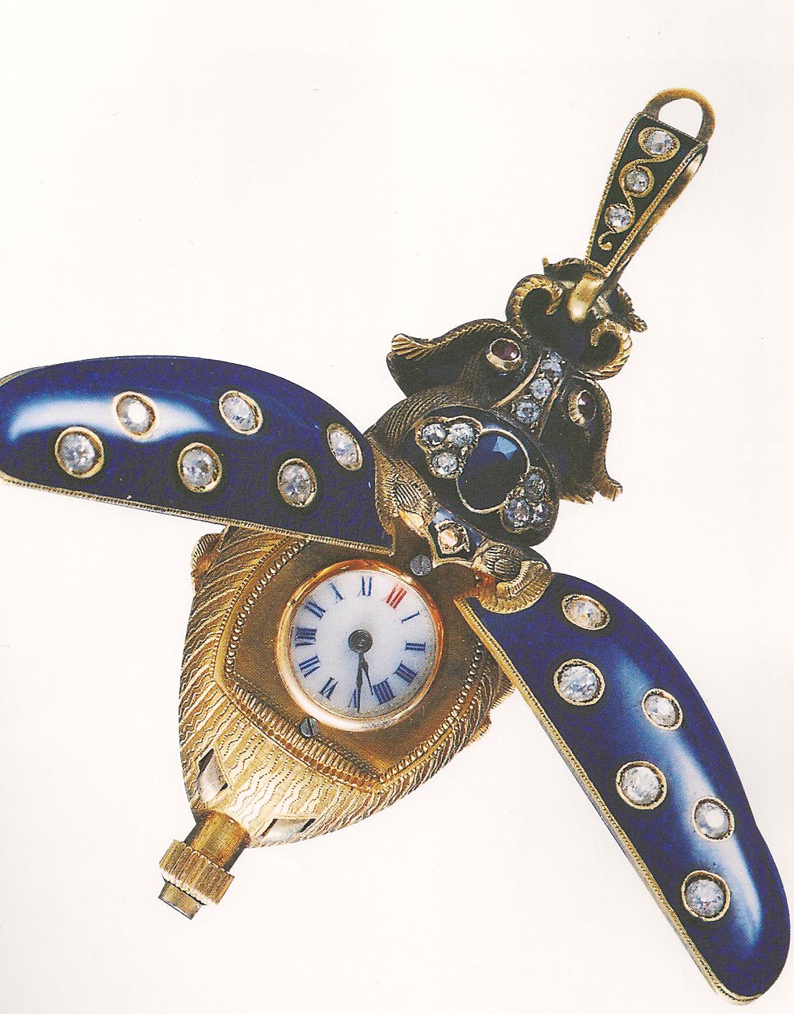 Ил.237. Часы-подвеска в виде жука. Золото, стекло, эмаль, ограненные камни, инкрустация. Швейцария, XIX в. Музей Гугун, Пекин [164, с. 259].