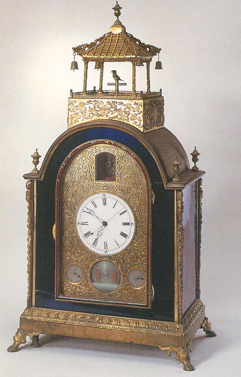 Ил.231. Механические часы-павильон настольные. Дерево, медь, чеканка, гравировка, золочение, лаковая роспись. Англия, XVIII в. Музей Гугун, Пекин [163, с. 204, № 180].