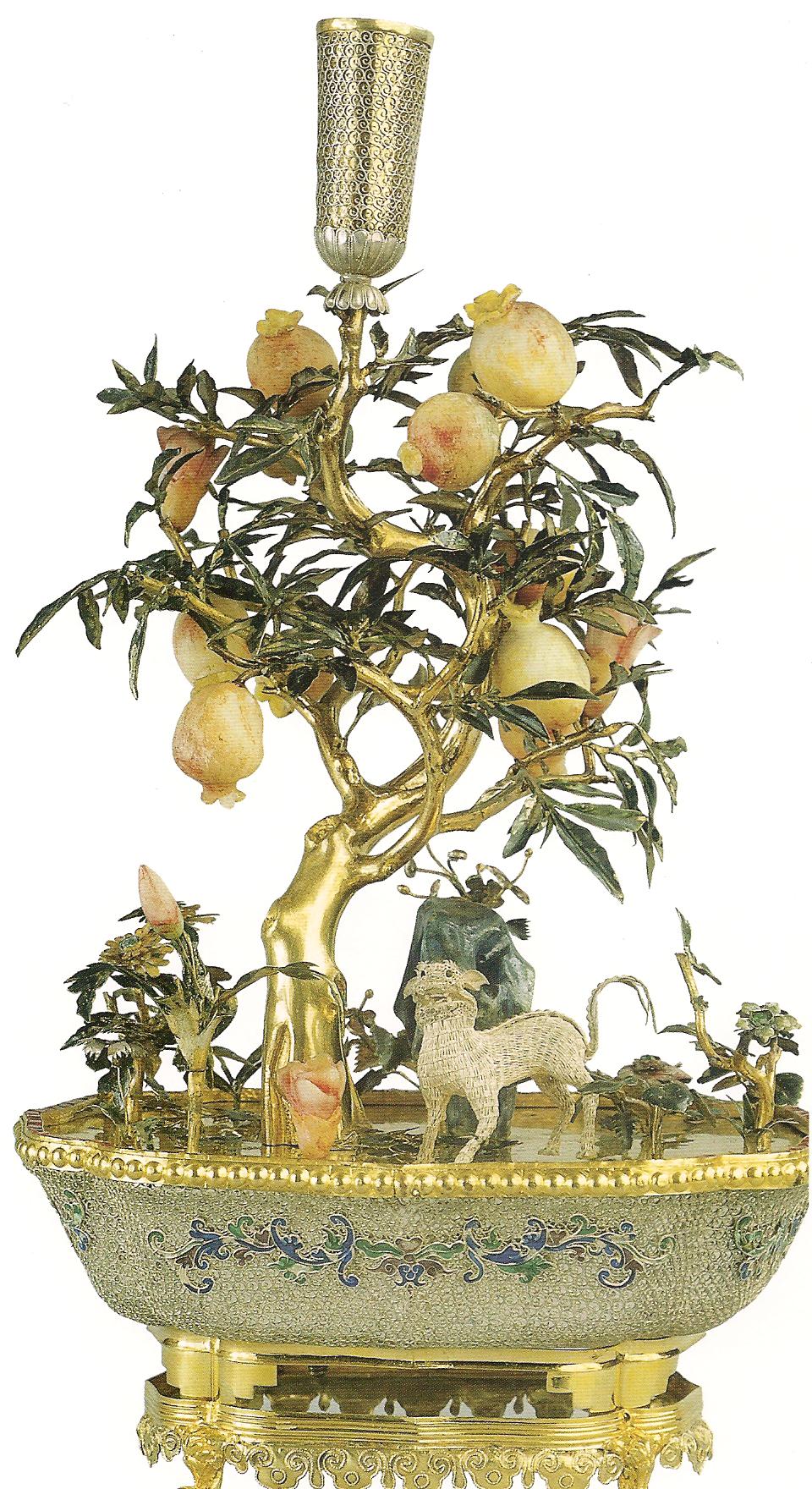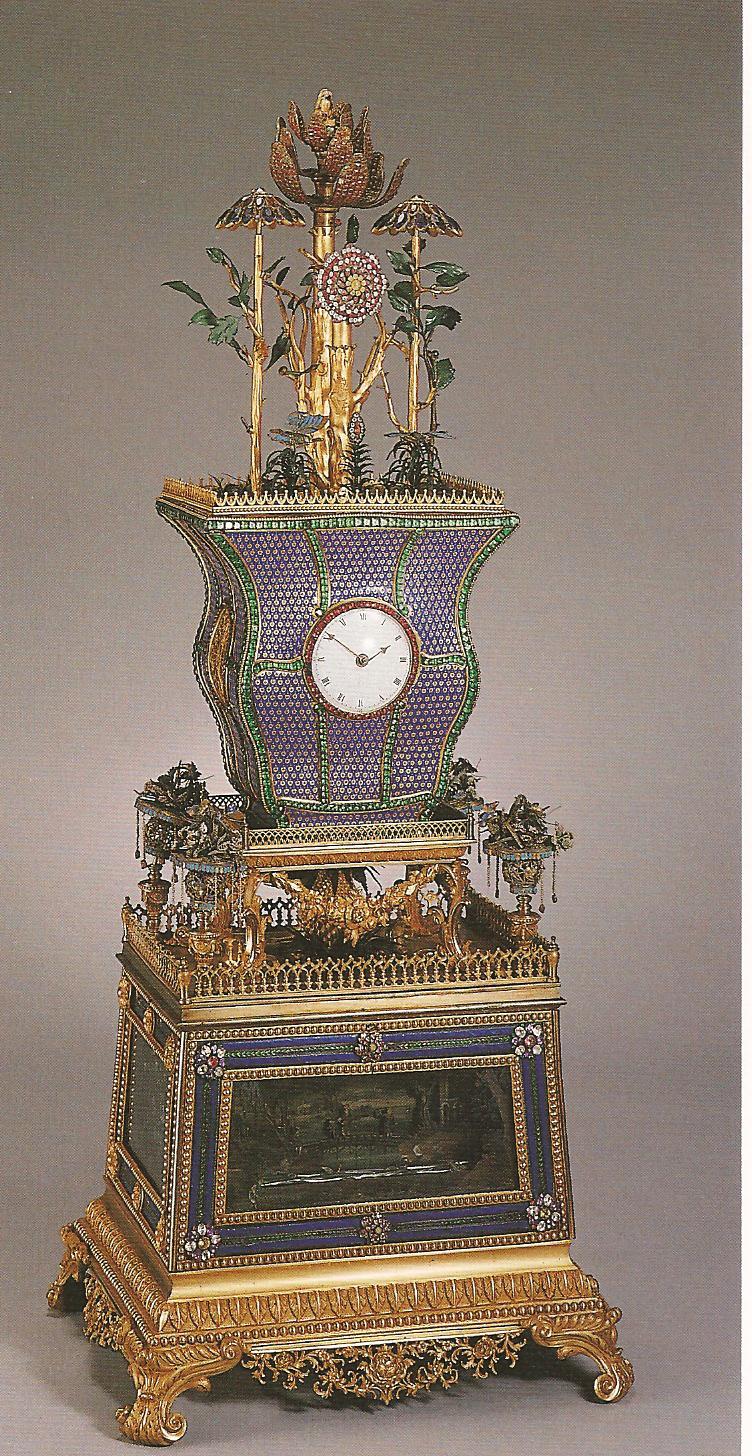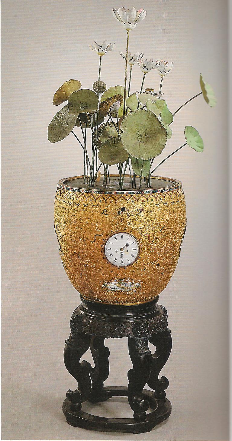 Ил.246. Часы-кашпо. Бронза, стекло, эмаль, стразы, литье, гравировка, золочение, инкрустация. Мастерские Кантона/Гуанчжоу, период Цяньлун. Музей Гугун, Пекин [164, с. 63].