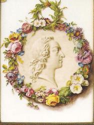 Ил.253. Портрет Людовика XV en grisaille в раме в виде цветочного венка. Фарфор, надглазурная роспись. Франция, Севр, 1761. ГЭ, Санкт-Петербург [51, с. 69 ].