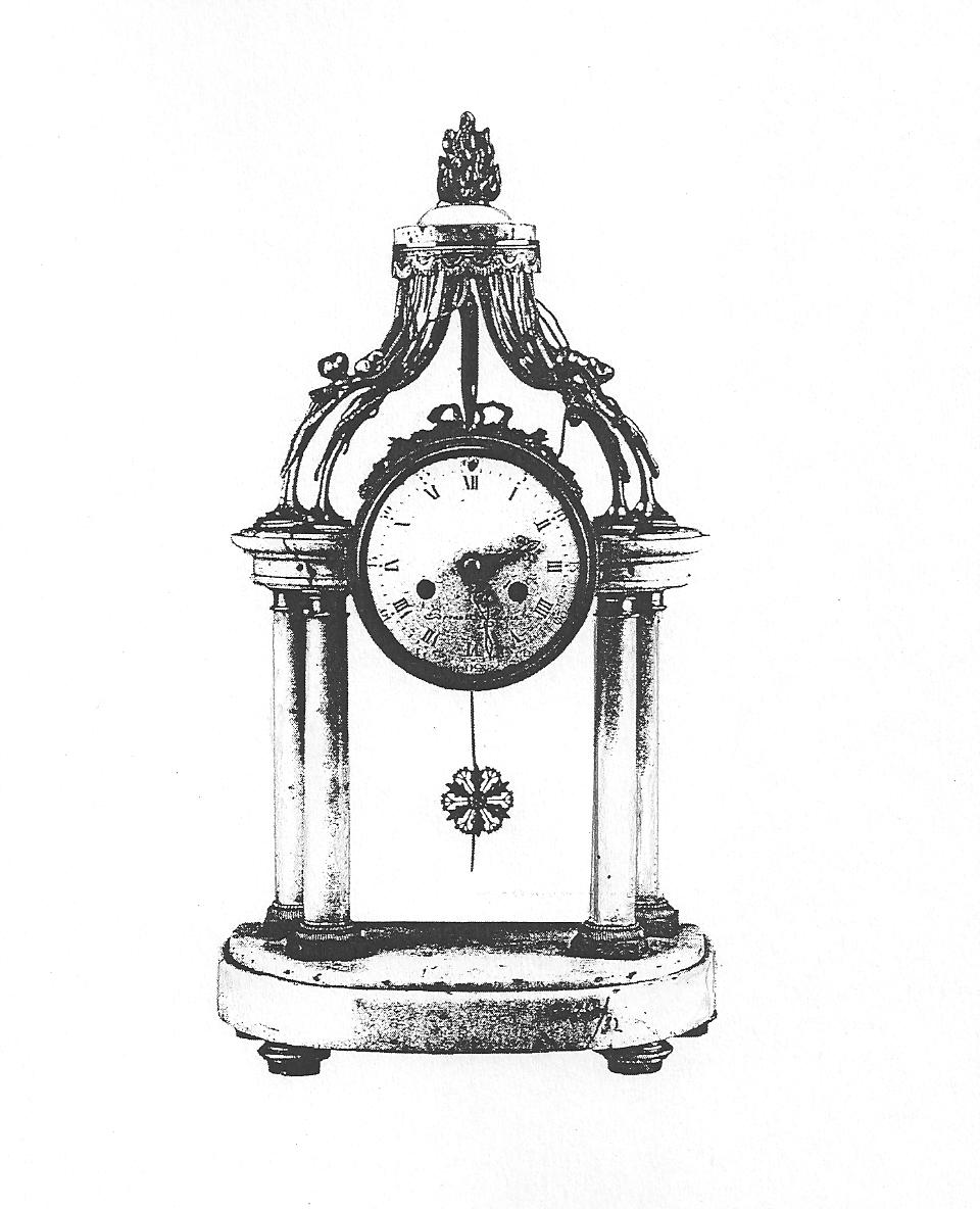 Ил.257. Часы-павильон каминные. Бронза, стекло, мрамор, эмаль, литье, золочение. Париж, 1780-е гг. ГИМ, Москва [146, № 147].