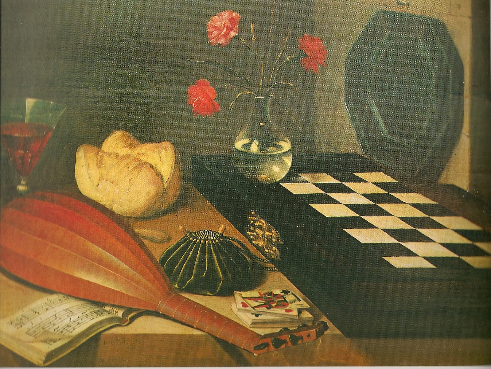 Ил.270. Л. Божен (?). «Пять чувств/Натюрморт с шахматами». Холст, живопись маслом, до 1630 г. Лувр, Париж [Энциклопедия живописи. М., 2007, с. 70].
