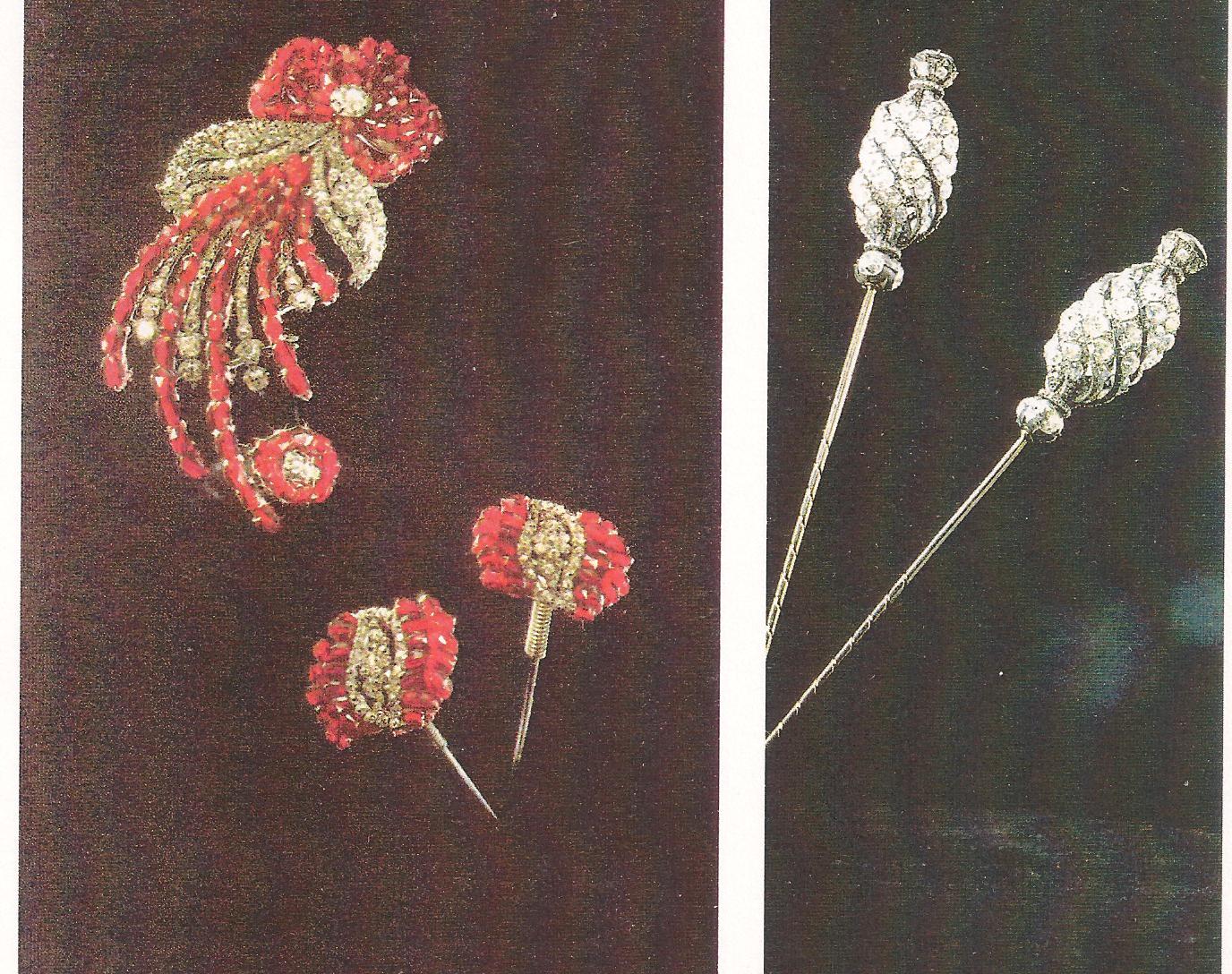Ил.276. Пара шляпных шпилек. Золото, серебро, бриллианты. Россия, конец XVIII в. Государственный алмазный фонд, Москва.