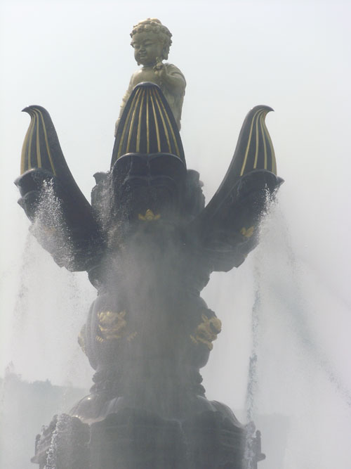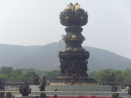 Буддийский комплекс в Уси (провинция Цзянсу, Китай). Бронзовая статуя Будды высотой 88 метров на холме Линшань. Фонтан с центральной фигурой Будды в цветке. Фотографии предоставлены А.И.Кобзевым.