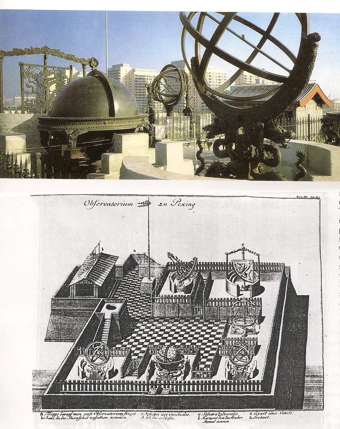 Рис.3. Обсерватория в Пекине. Гравюра на меди из книги иезуита Ж.-Б. дю Альде (1749) и современный фотоснимок (выше).
