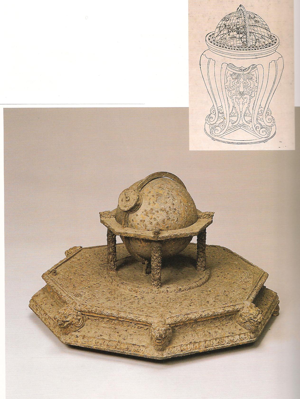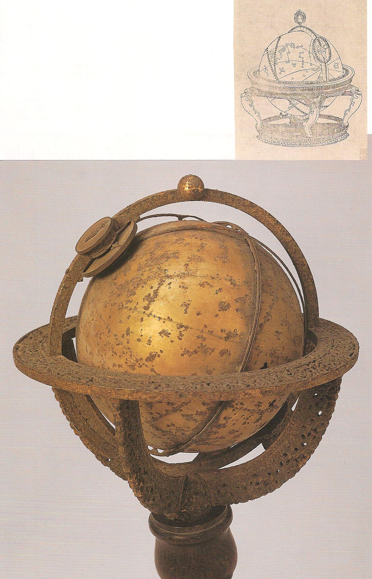 Ил.70. Внизу: Небесный глобус. Железо, золотая насечка, Пекинские придворные мастерские 1657. Музей Гугун, Пекин [163, с. 4].