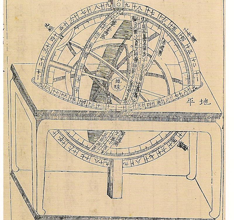 Ил.84. Глобус земной и гравюра из сборника Хуанчао лици туши [158, т. 3].