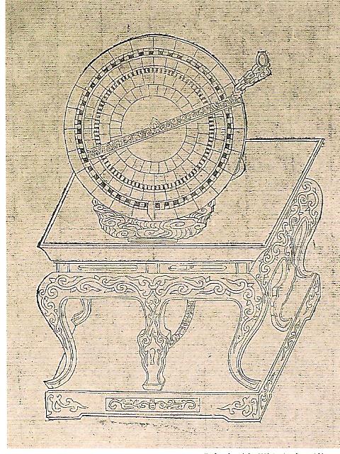 Ил.75. Слева: Гравюра с изображением астрономической проекции для определения небесного экватора из сборника Хуанчао лици туши [158, т. 3].