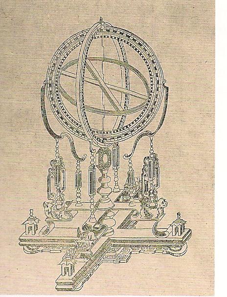 Ил.73. Справа: Гравюра с изображением армиллярнай сферы с маркой Ф. Вербиста из сборника Хуанчао лици туши [158, т. 3].