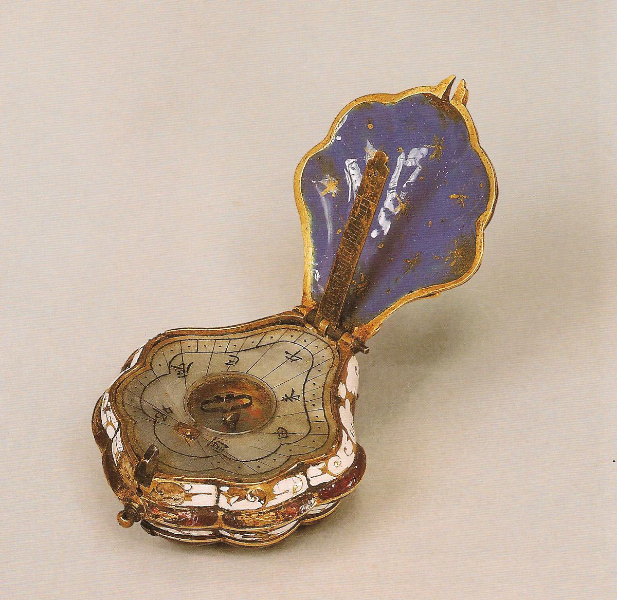Ил.87. Портативные горизонтальные солнечные часы. Металл, выемчатая эмаль, золочение, пекинские придворные мастерские, период Цяньлун. Музей Гугун, Пекин [163, с. 26].