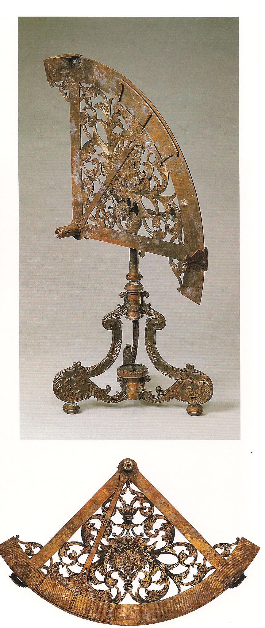 Ил.83. Слева: Квадрант с двумя телескопами, сделанный для принца Уэльского Георга. Медь, литье, гравировка, золочение, Лондон, XVIII в. Музей Гугун, Пекин [163, с. 121].