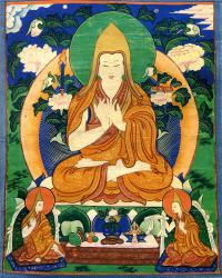 43. Цонкапа. Китай, XIX в. Танка, грунтованная ткань, минеральные краски.