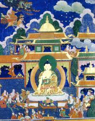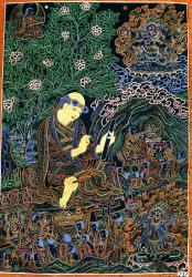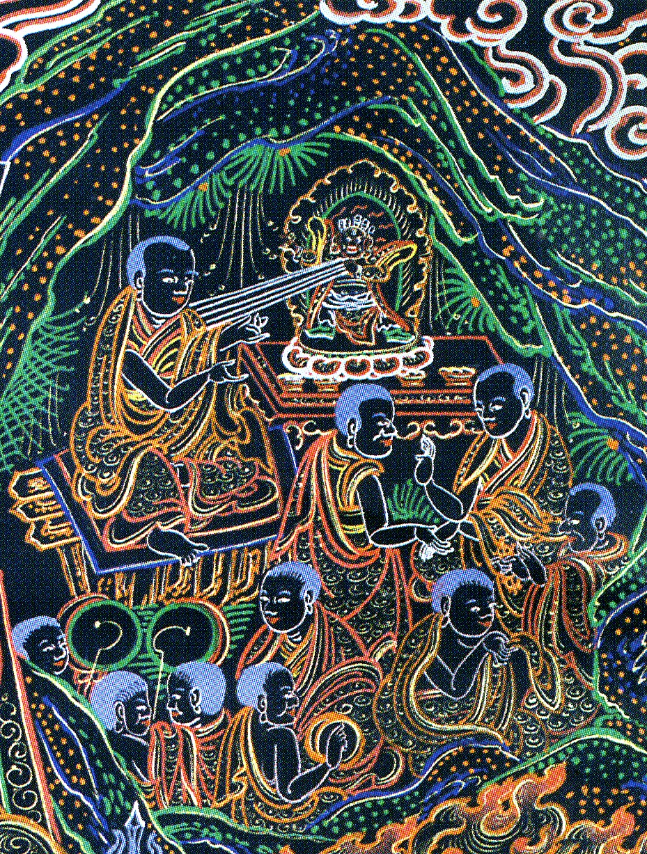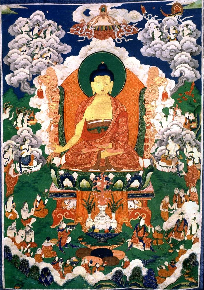 Будда Шакьямуни и 16 архатов (фрагмент танки)