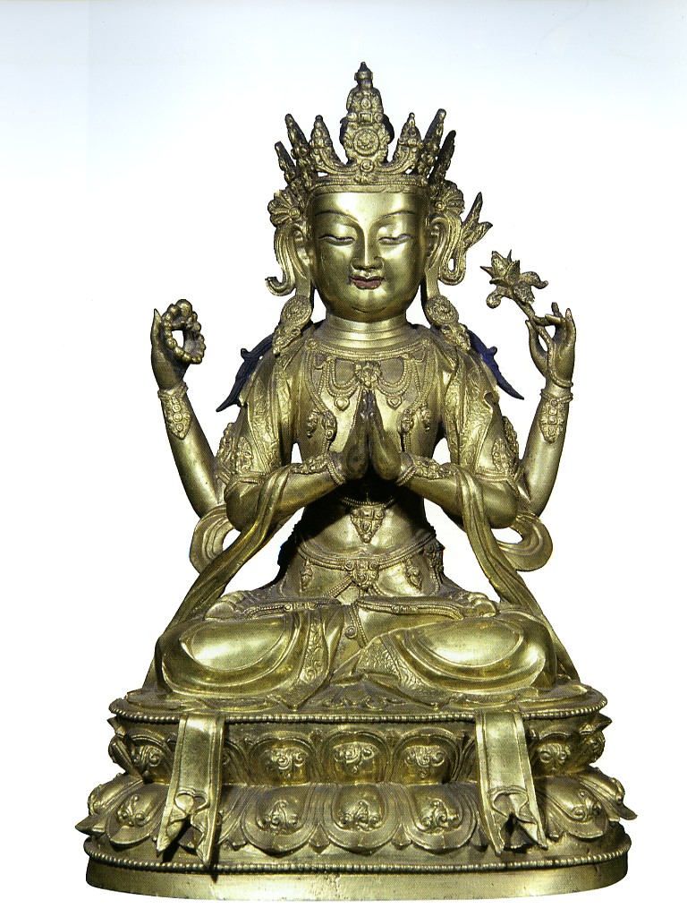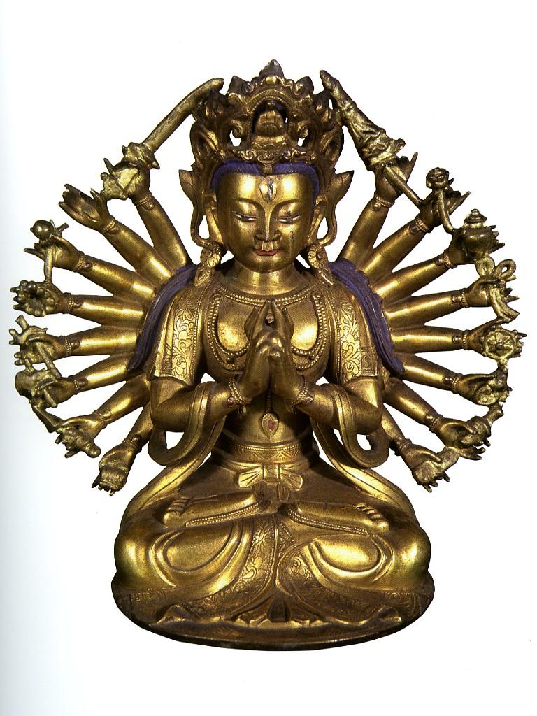 Аштадашабхуджа Падманартешвара. Китай, XIX в. Бронза, литье, позолота, роспись.
