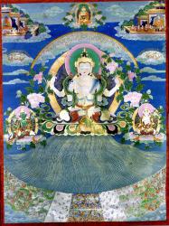 Амогхапаша Локешвара. Китай, XIX в. Танка, грунтованная ткань, минеральные краски.