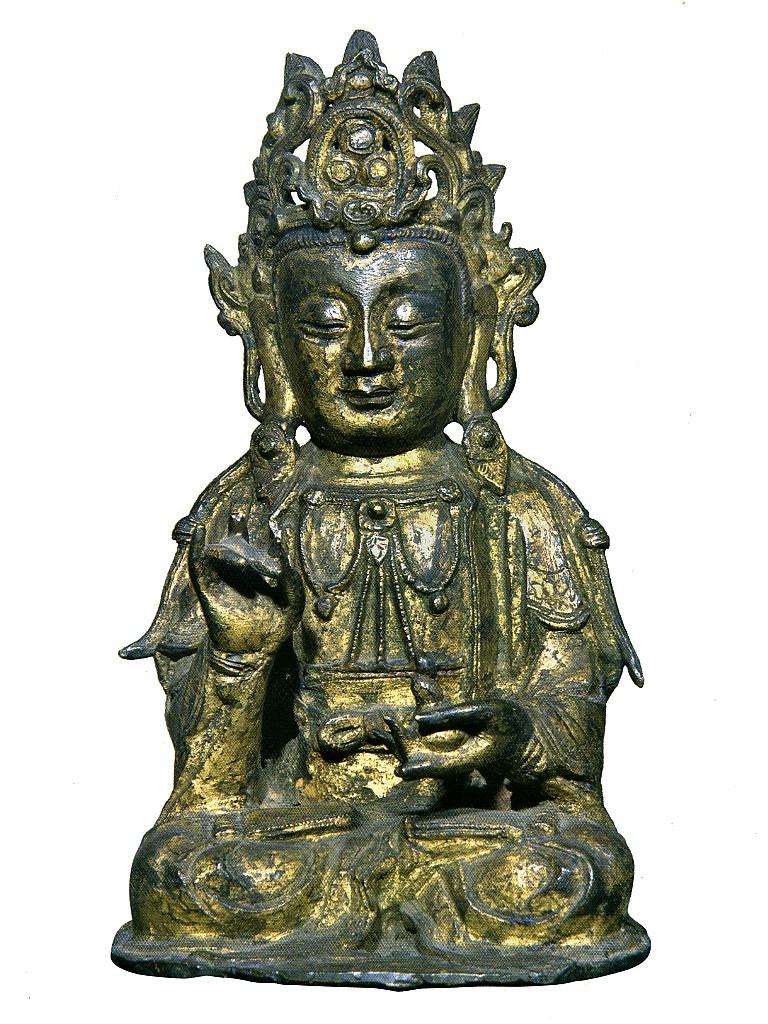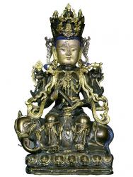 Майтрея. Китай, XIX в. Медь, чеканка, инкрустация, позолота, золотистая паста, роспись.