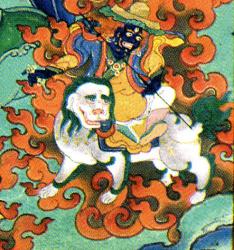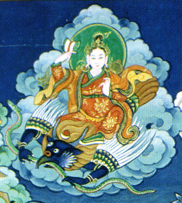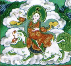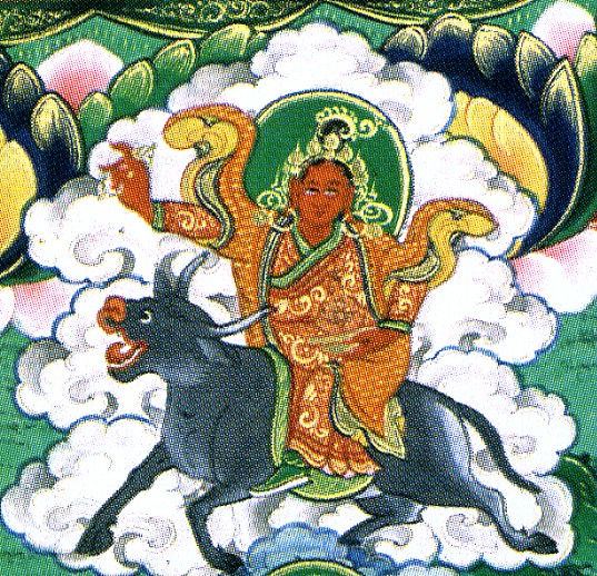 Упасака Дхарматала на опахале из ячьего хвоста (скр. чамара).