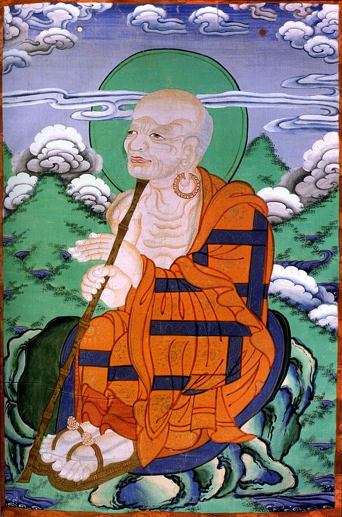 Упасака Дхарматала. Китай, 19 в. Танка, грунтованная ткань, минеральные краски.