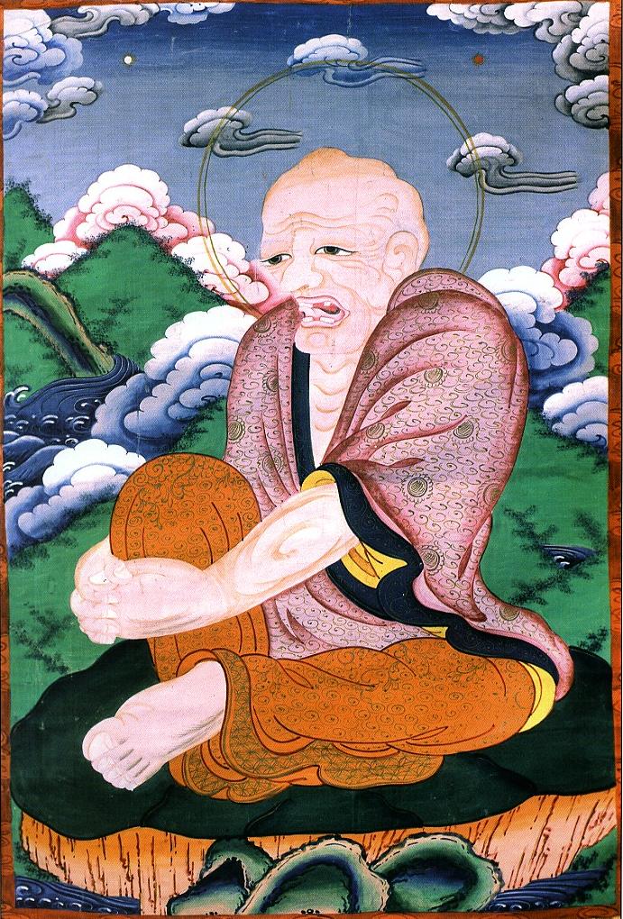 Архат Пиндолабхарадваджа. Китай, 19 в. Танка, грунтовання ткань, минеральные краски.