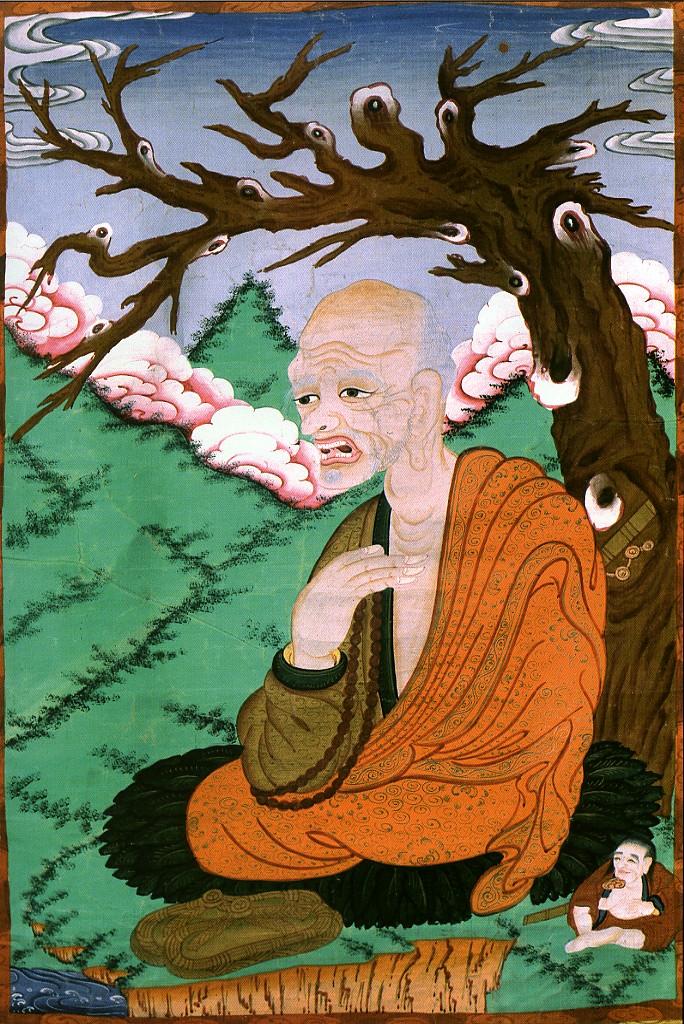 Архат Чудапантхака. Китай, 19 в. Танка, грунтованная ткань, минеральные краски.