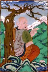 Архат Нагасена. Китай, 19 в. Танка, грунтованная ткань, минеральные краски.